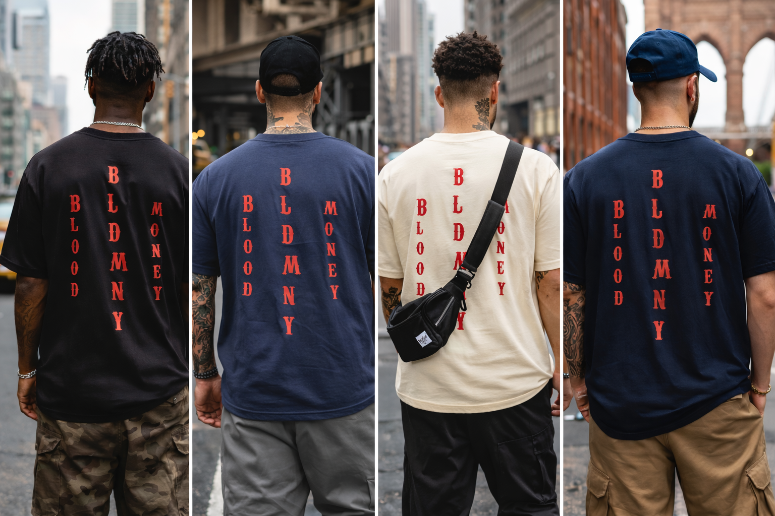 after constantly buying shirts that faded after one wash or weren't the right fit, i decided to order my own shirts online, sourcing fabrics & materials to be manufactured and Blood Money was born.